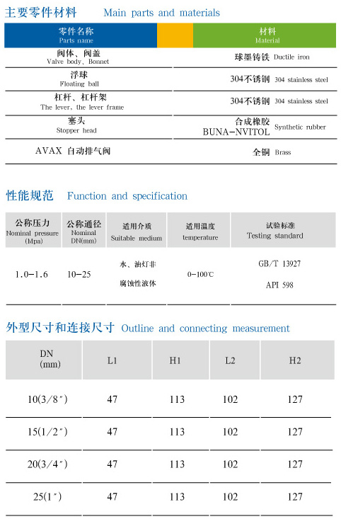 单杆式(SIKAPLE LEVER TYPE)微量排气阀,为一类似椭圆形阀体,内部所有零件包括浮球,杠杆、阀座等均为304不锈钢,内部使用标准排气孔径1/6",适合用于PN16工作压力环境。介质温度:0-80度。