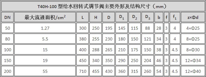 T40H型给水回转式调节阀主要性能参数