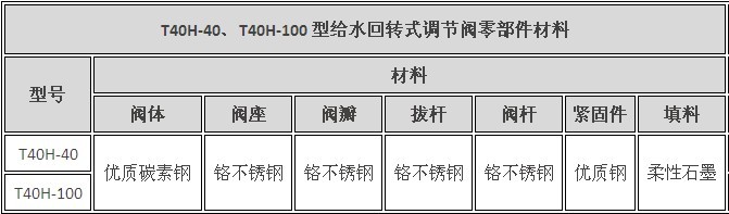 T40H型给水回转式调节阀主要零件材料