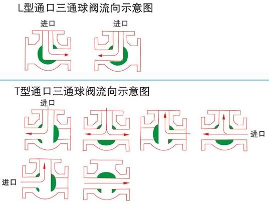 电动三通球阀分L型和T型.L型三通球阀适用于介质流向的切换,能使相互垂直的两个通道连通:T型三通球阀适用于介质的分流、合流或流向切换,T型孔道可以使三个通道互相连通或使其中两个通道连通,三通球阀一般采用两个阀座结构,亦可根据用户要求采用四阀座结构.