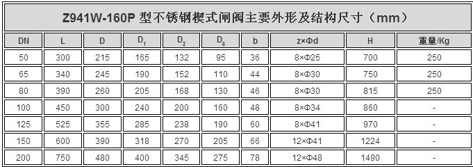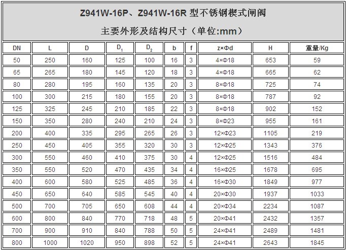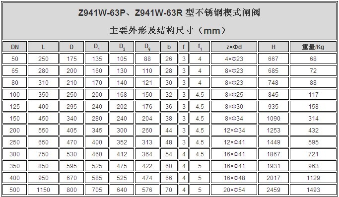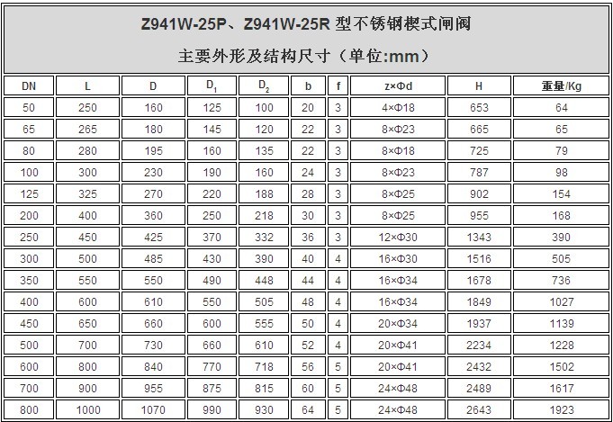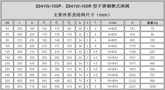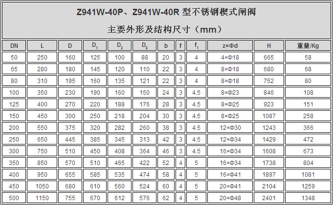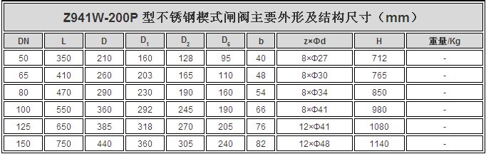 Z941W电动不锈钢法兰闸阀外形尺寸